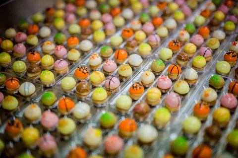 Depuis près de 20 ans, Dessert Créations est spécialisée dans la production sous "private label" de desserts & pâtisseries artisanales tel que des petits fours à la pâte d'amandes, à la crème au beurre, tiramisus, mousses au chocolat, mignardises et verrines à destination de la grande distribution.. Grâce à nos installations modernes et notre expertise en pâtisserie industrielle, nous répondons efficacement aux demandes de grandes quantités.
